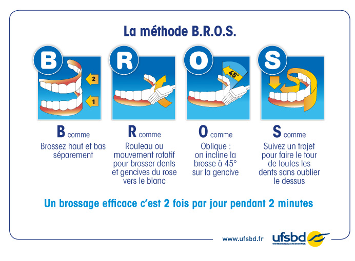 La technique B.R.O.S. de l’Union Française de la Santé Bucco-Dentaire (UFSBD), permet de brosser l’intégralité des dents tout en étant doux avec les gencives. Porteur d’un appareil d’orthodontie fixe ou amovible, cette technique reste à privilégier, bien qu’elle puisse être complétée par d’autres instruments de brossage pour parfaire le nettoyage. Pour en savoir plus sur l’hygiène bucco-dentaire adéquate pour les porteurs d’appareils orthodontiques fixes, rendez-vous sur notre article dédié ! « Appareil fixe et hygiène bucco-dentaire »